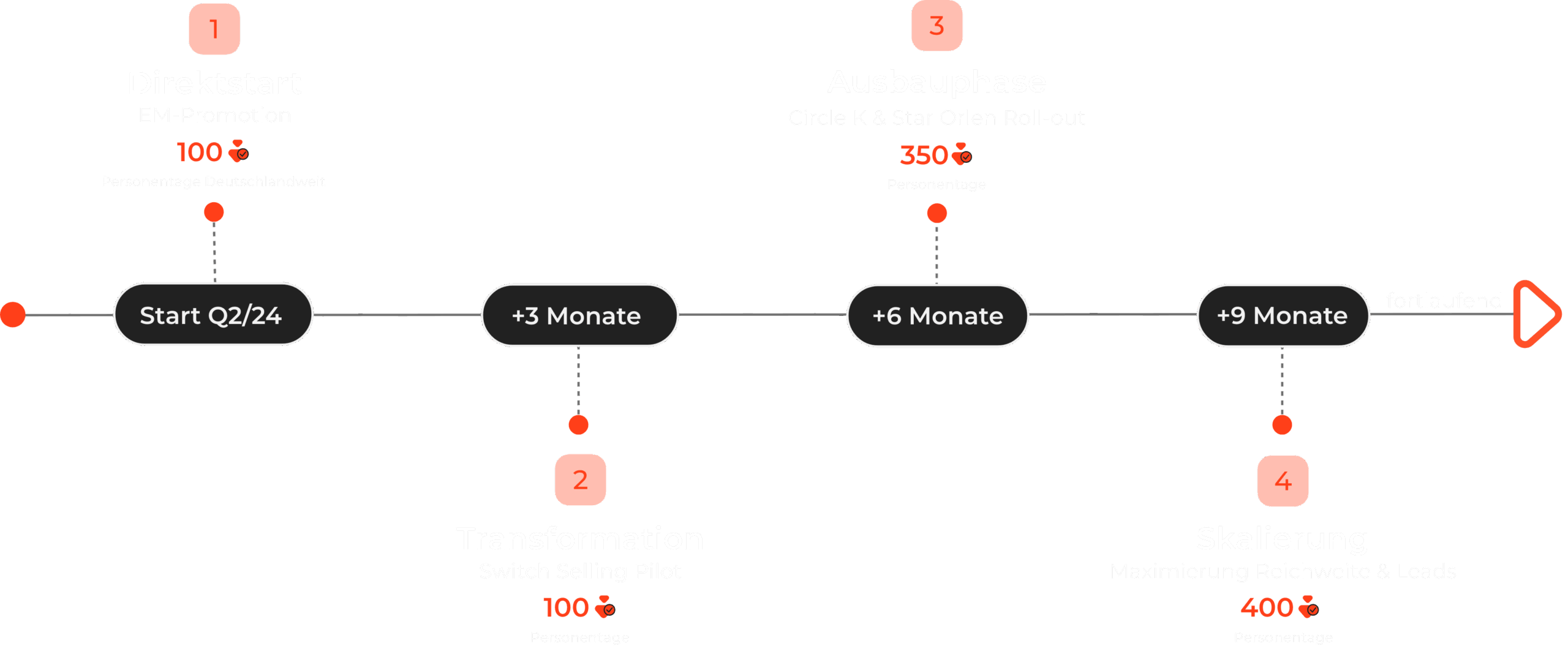 - POS-Promotion: Umsetzung einer erfolgreichen Pilotphase an 3 Standorten, später strategischer Ausbau auf über 20 Märkte deutschlandweit.